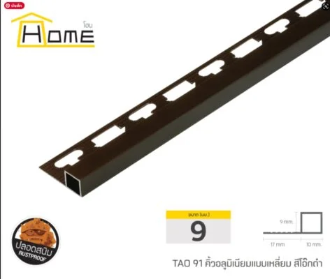 คิ้วเหลี่ยมอลูมิเนียมสีโอ๊กดำ 9มม. ยาว 2 เมตร ไม่ลอก ไม่ดำ