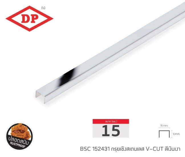 กรุยเชิงสแตนเลส ขนาด 15 มม. ยาว 2.4 ม. (มีสีให้เลือก)
