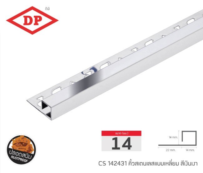 📢 คิ้วสเตนเลสแบบเหลี่ยม 14 มม. ยาว 2.4 ม.