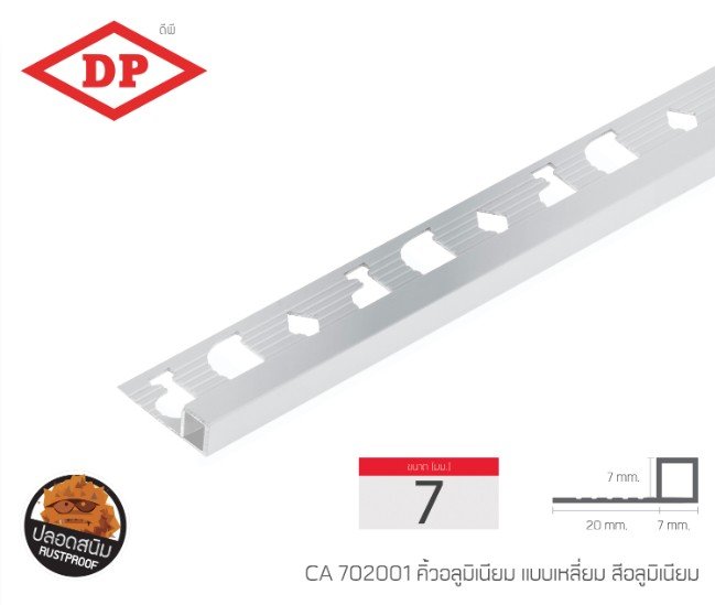 📢 คิ้วอลูมิเนียมแบบเหลี่ยม ขนาด 7 มม. ยาว 2.0 ม.