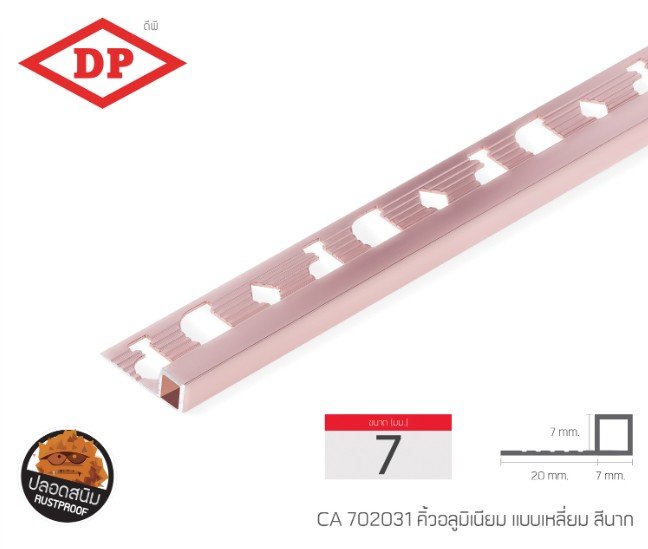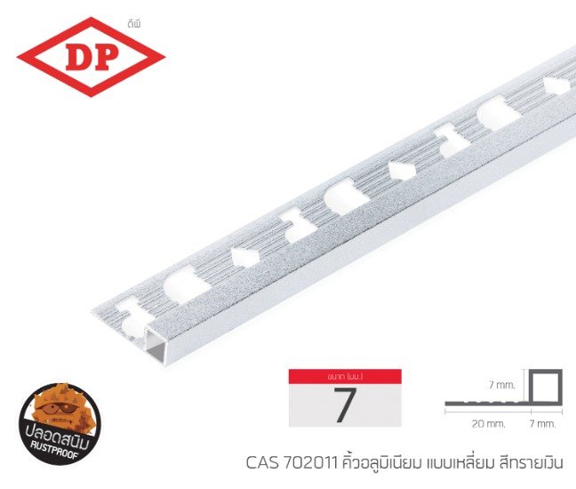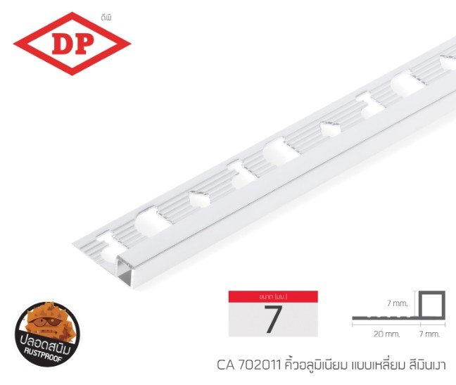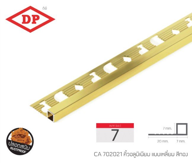คิ้วอลูมิเนียมแบบเหลี่ยม ขนาด 7 มม. ยาว 2.0 ม.