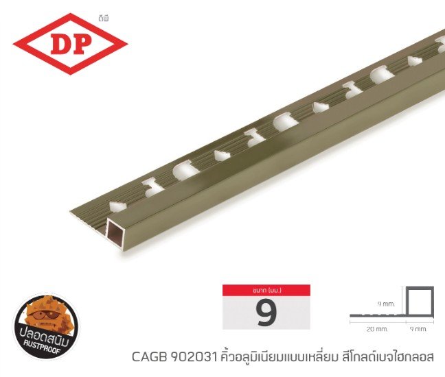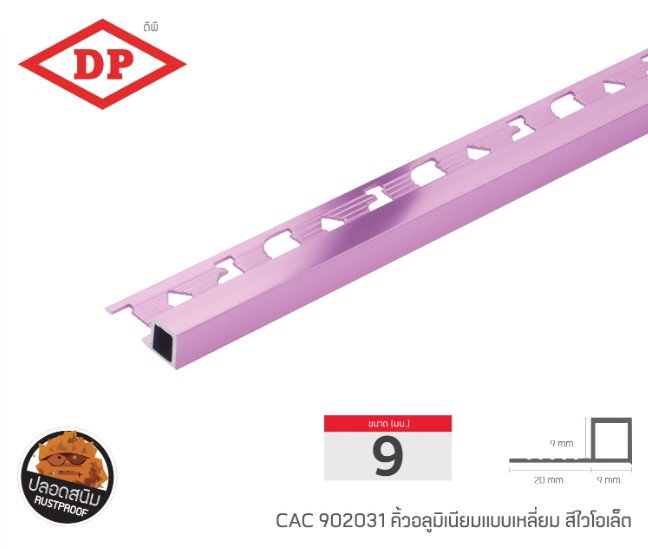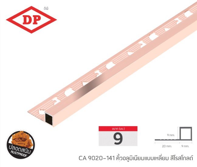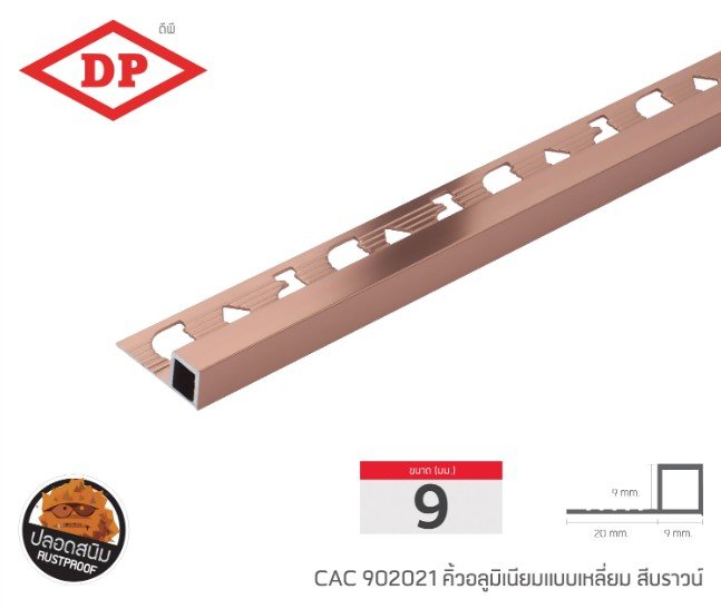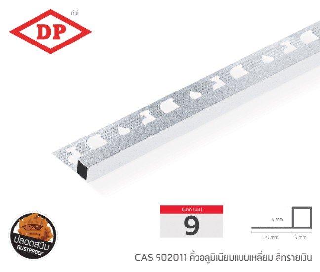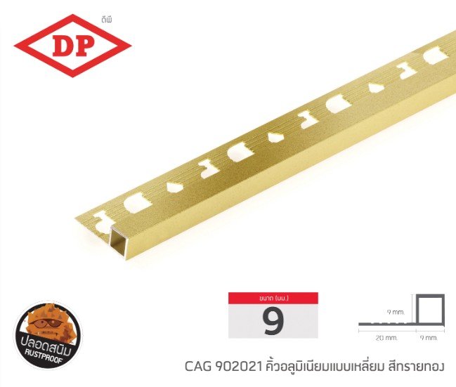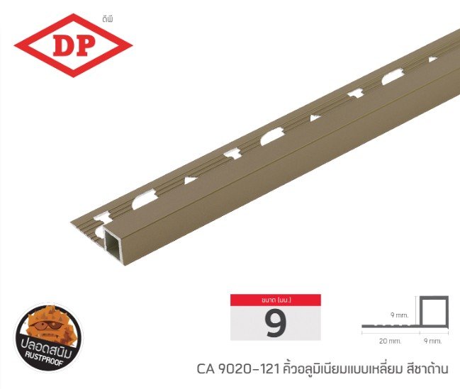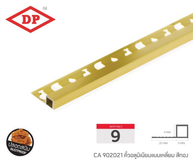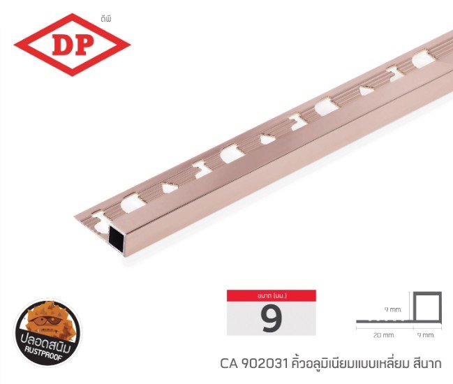 คิ้วอลูมิเนียมแบบเหลี่ยม ขนาด 9 มม. ยาว 2.0 ม.