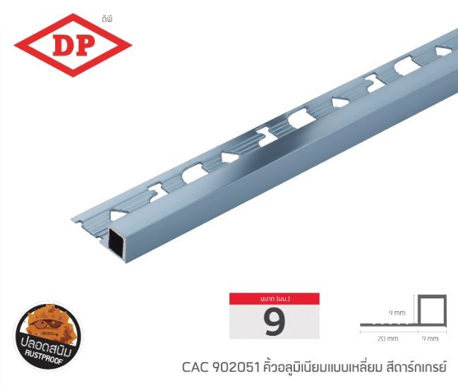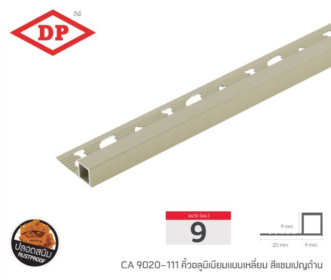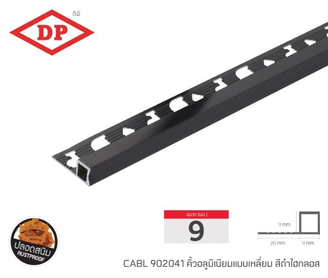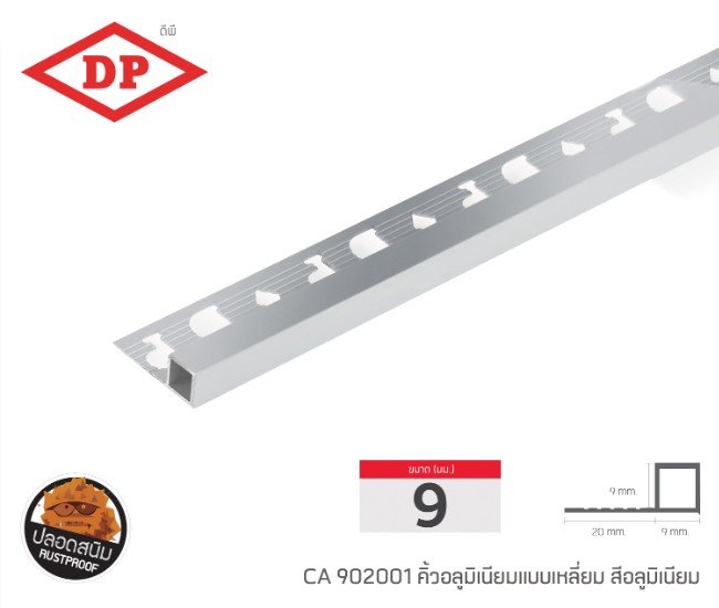 📢 คิ้วอลูมิเนียมแบบเหลี่ยม ขนาด 9 มม. ยาว 2.0 ม.