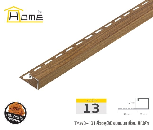 คิ้วอลูมิเนียมแบบเหลี่ยมลายไม้ ขนาด 13 มม. ยาว 2 ม.