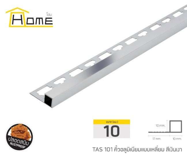 คิ้วอลูมิเนียมแบบเหลี่ยม ขนาด 10 มม. ยาว 2 ม.