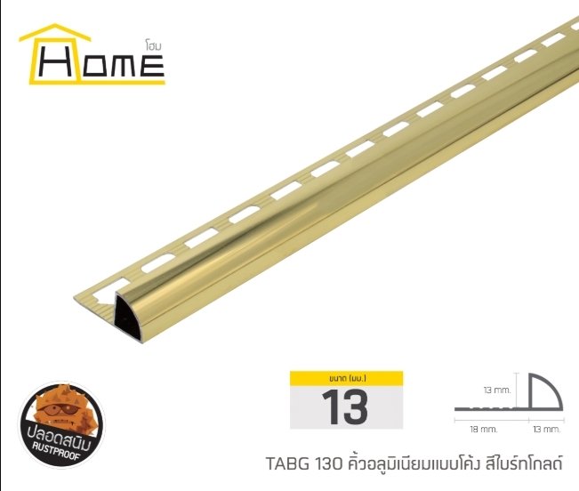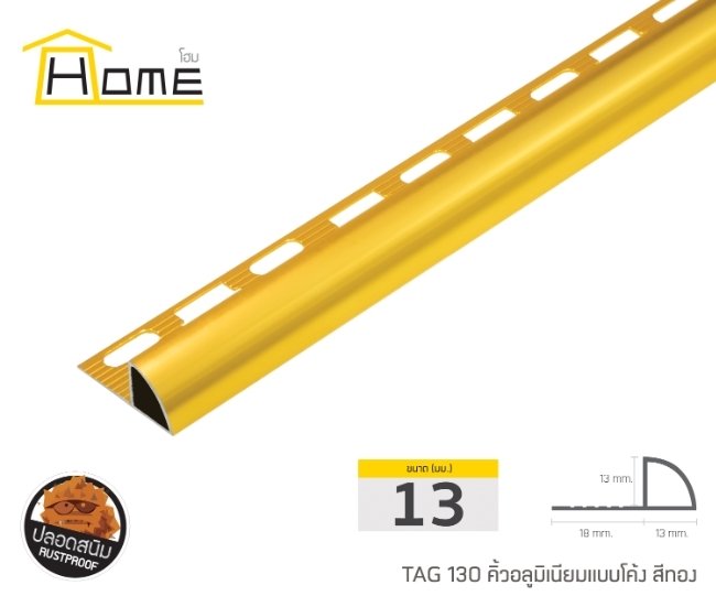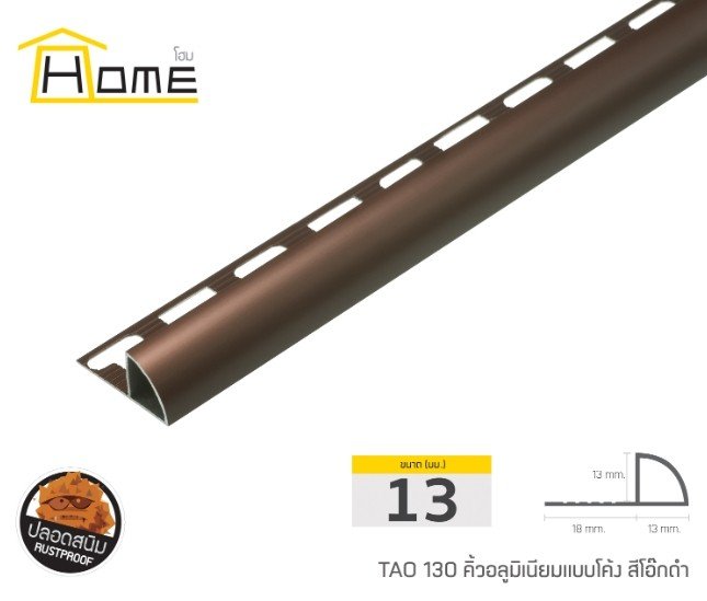 คิ้วอลูมิเนียมแบบโค้ง ขนาด 13 มม. ยาว 2 ม.