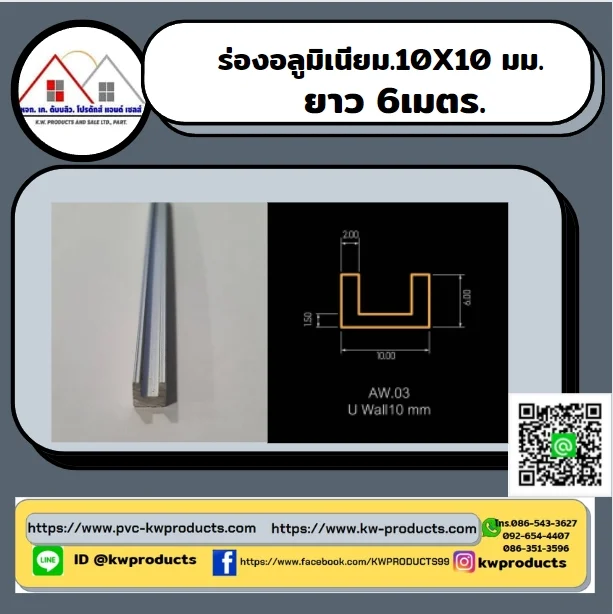 ร่องอลูมิเนียมมี 10มม.ยาว6เมตร